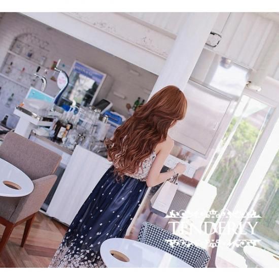 リゾート マキシ ワンピース コーデ 夏 花柄 ホルターネック /ネイビー
