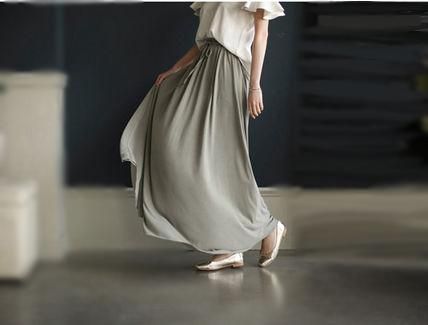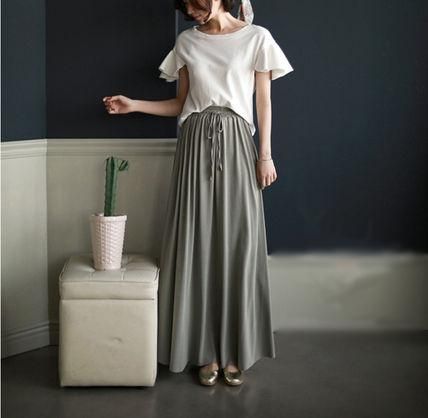 リゾート セットアップ フリル 半袖 ゆるふわマキシスカート /白グレー