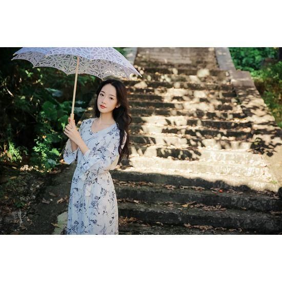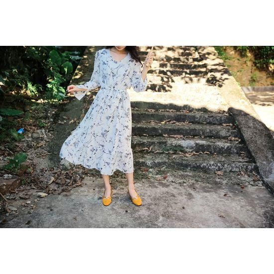 リゾート マキシ ワンピース 長袖 レトロ ナチュラル系 花柄 ロング丈