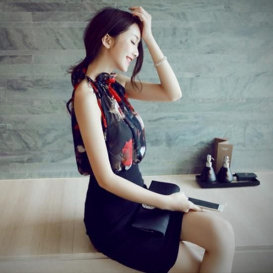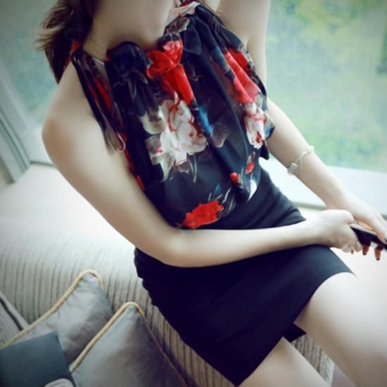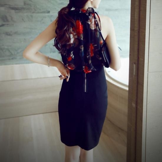 リゾート セットアップ ディナー ノースリーブ 花柄 シフォントップス 膝丈 タイト スカート