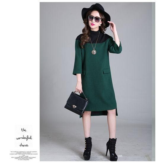 リゾート ワンピース 冬 ディナー 膝丈 レトロ 長袖 コクーン 七分袖 ゆったり