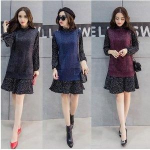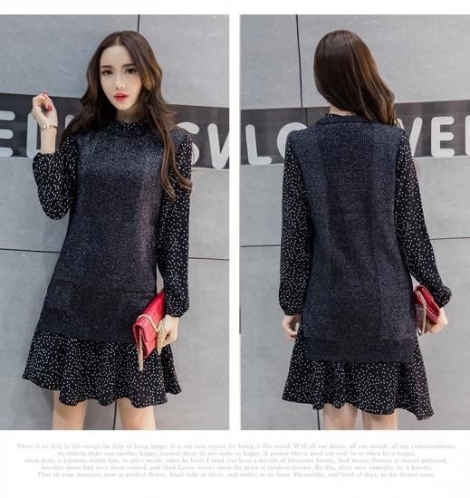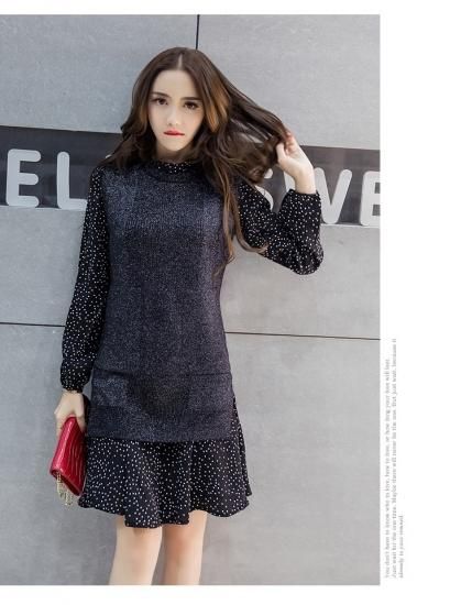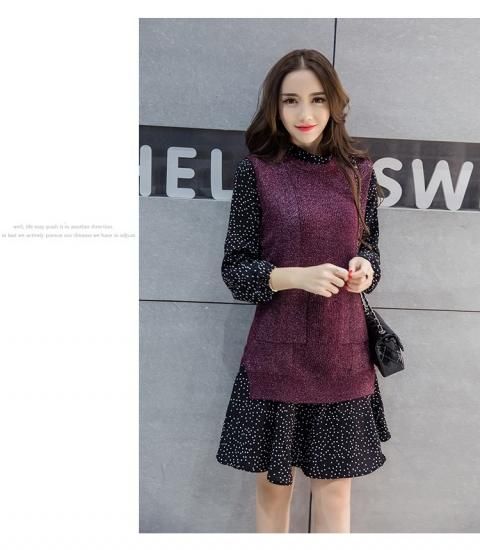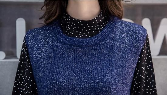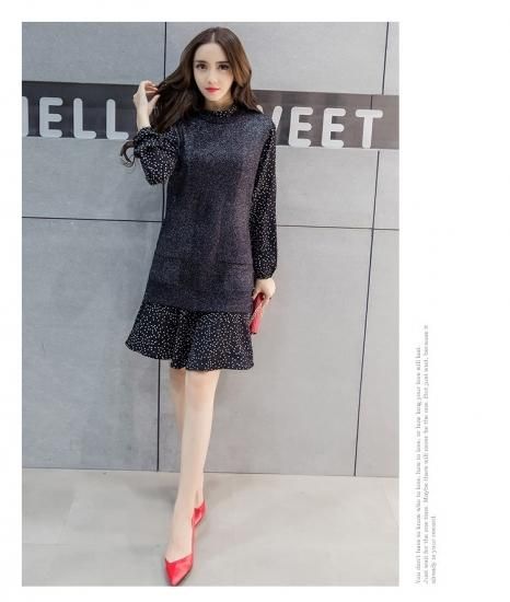 リゾート ワンピース ミニ 冬 Aライン ラメニット ロングベスト Aライン ドッキングワンピ /黒/赤/青