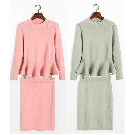 リゾート セットアップ スカート 膝丈 タイト 長袖 ぺプラム きれいめ ニットアップ