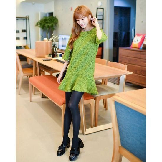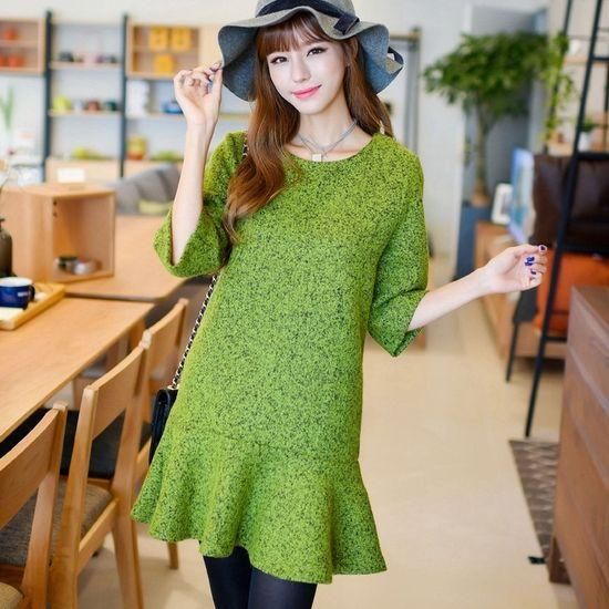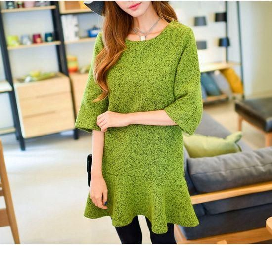 リゾート ワンピース ミニ 冬 ゆったり 裾広がり きれいめ カジュアル 七分袖