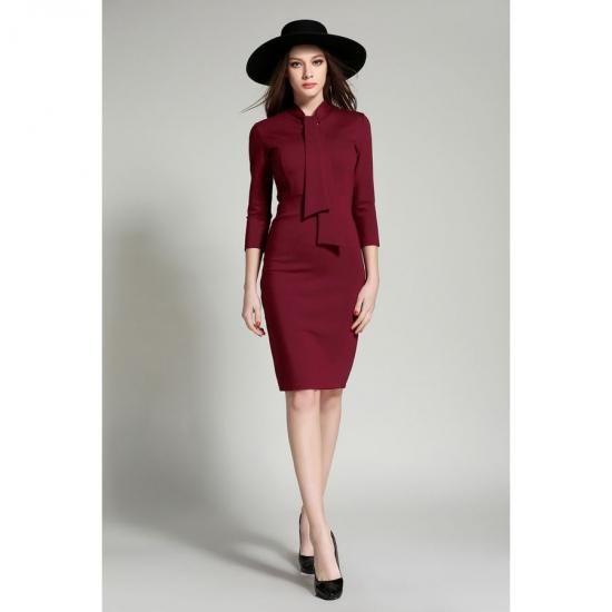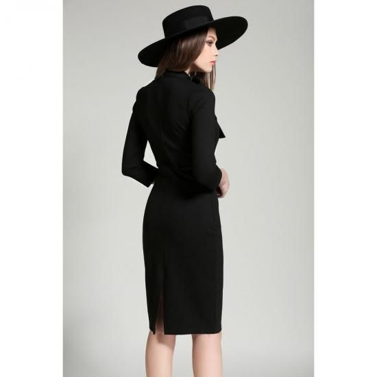 リゾート ワンピース ディナー 膝丈 タイトクラシカル レトロ /黒/赤