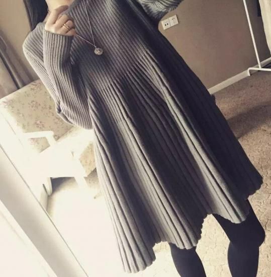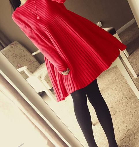 リゾート ワンピース 膝丈 ニット 裾広がり 大人 ガーリー /黒/グレー/赤