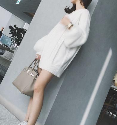 リゾート ワンピース ミニ ふわふわ ニット チュニック ボリュームスリーブ アラン