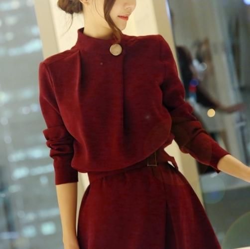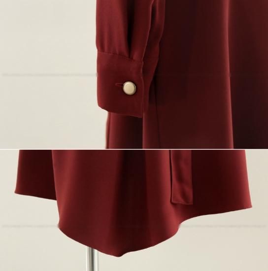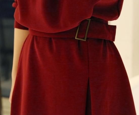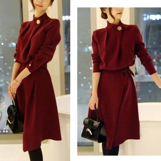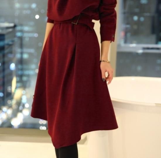 シンプル無地でレトロ感漂う膝丈の長袖ワンピース。