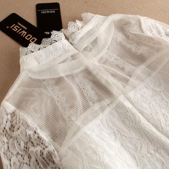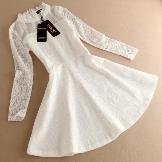 リゾート ワンピース 結婚式 ミニドレス 総レース フレア 長袖 シースルー /黒/白