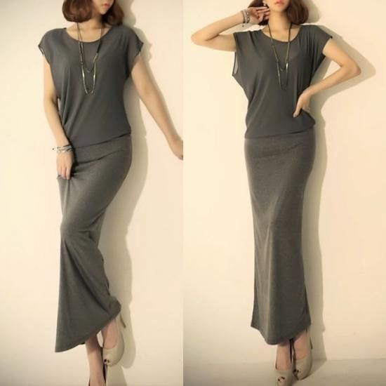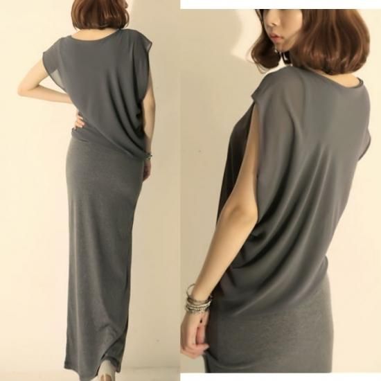 リゾート マキシワンピース コーデ 大人 カジュアル スウェット フレンチスリーブ 半袖 タイト /黒/グレー/ベージュ