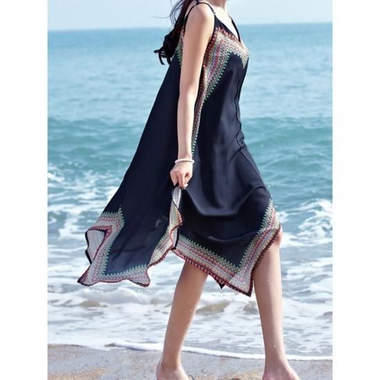 リゾート マキシ ワンピース コーデ キャミワンピ エスニック アフリカン 変則 ヘムライン 男ウケ