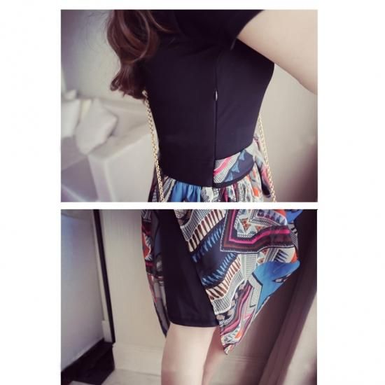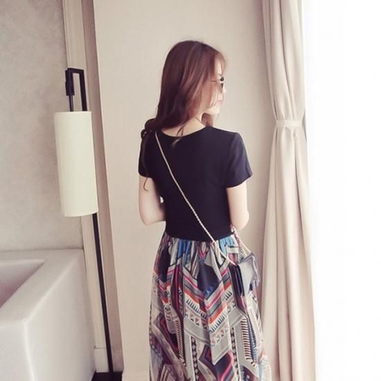リゾート ワンピース 膝丈 コーデ 半袖 大人 エスニック シフォン 切り替え