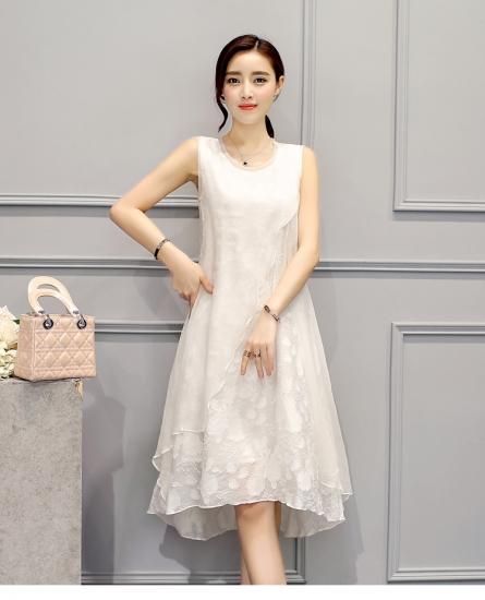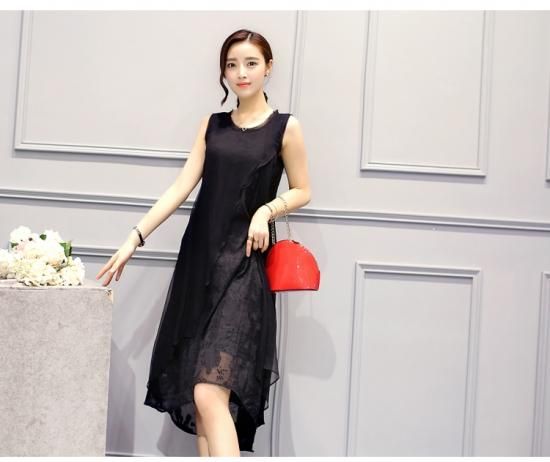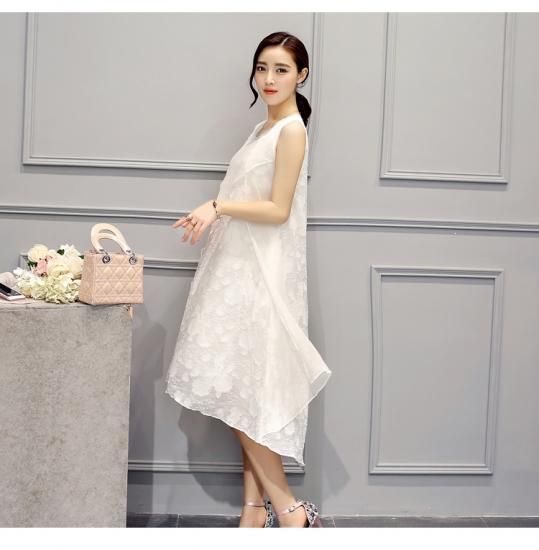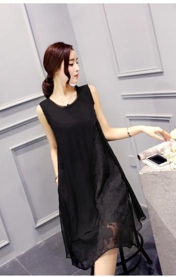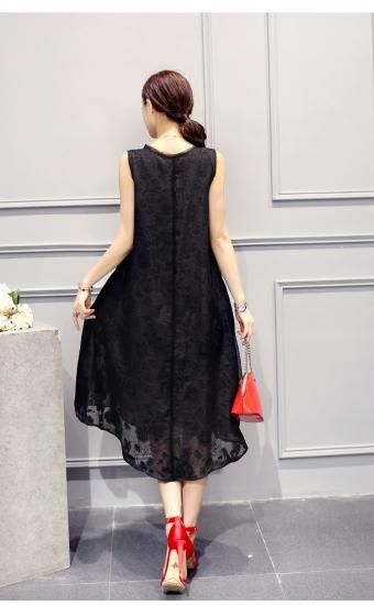リゾート ワンピース ミモレ丈 コーデ 結婚式 ノースリーブ ふんわり 裾広がり フィッシュテール シースルー /黒/白