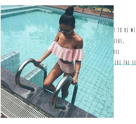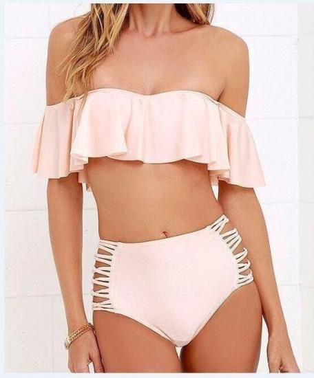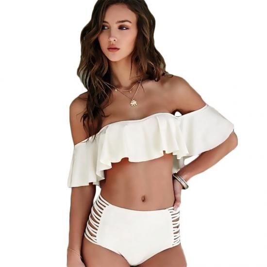 リゾート 水着 大人オフショルダー フリルハイウエストビキニ