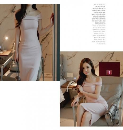 リゾート ワンピース 膝丈 コーデ セクシー 清楚 オフショルダー タイト ボディコン ピンク 無地
