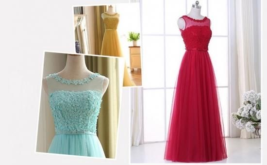 リゾート ウェディング ブライズメイド ドレス ロング フルレングス かわいい 花モチーフ /黄/青/赤/濃赤