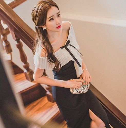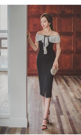 リゾート ワンピース 膝丈 コーデ 結婚式 オフショルダー 半袖 タイト 大人 ガーリー