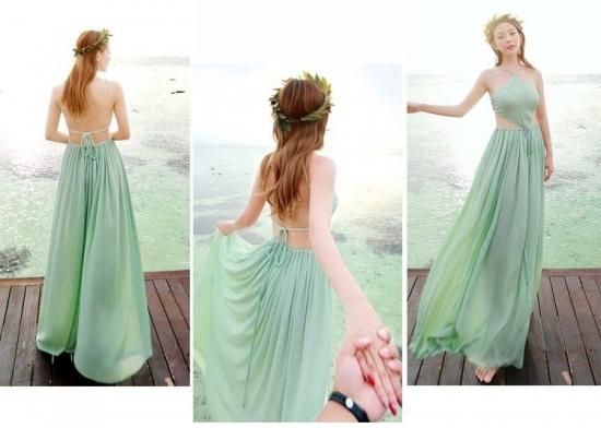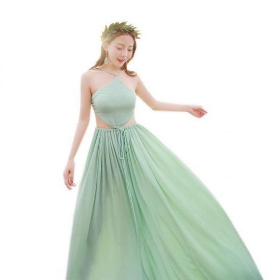 リゾート マキシ ワンピース カジュアル ブライズメイド サマードレス ボヘミアン ミント グリーン