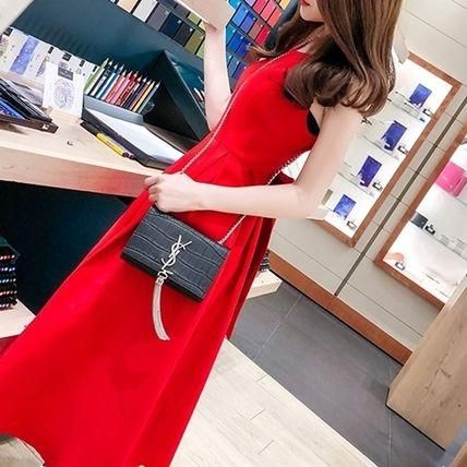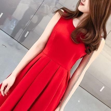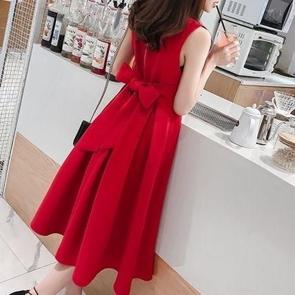 リゾート ワンピース 結婚式 リボン ノースリーブ キュート 膝丈