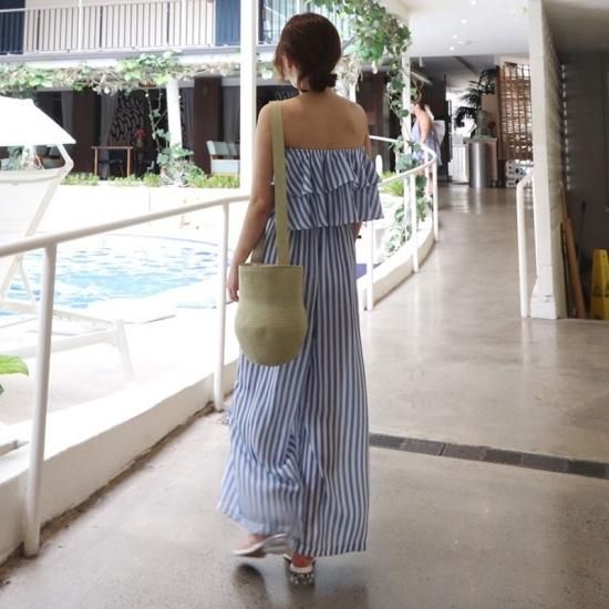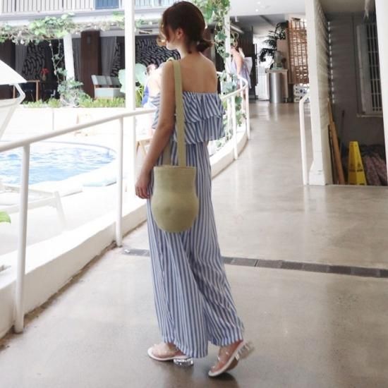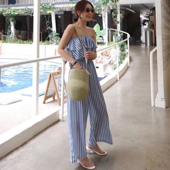 爽やかでリゾートにもおすすめ♪フリルがかわいいストライプオールインワン