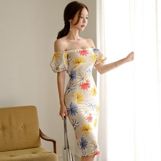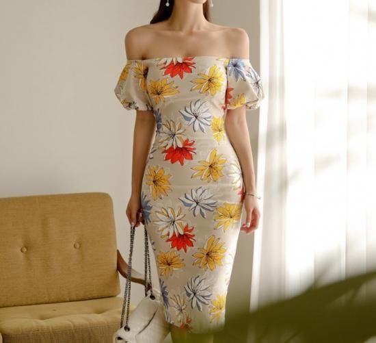 大人のリゾートスタイルに◇パフスリーブや花柄がかわいいタイトワンピース