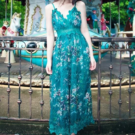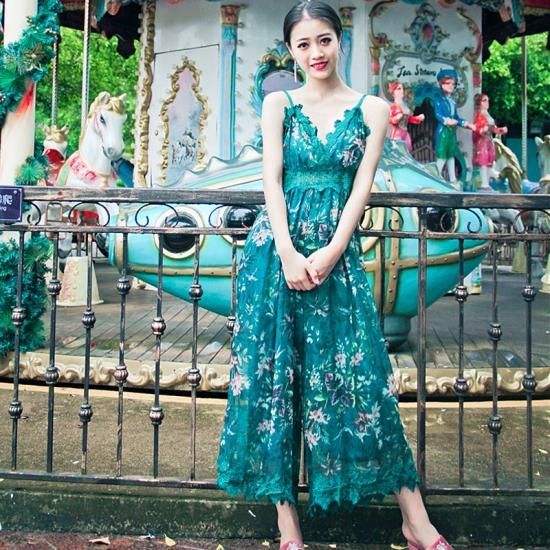 リゾートにもおすすめ♪女度を上げる花柄キャミオールインワン