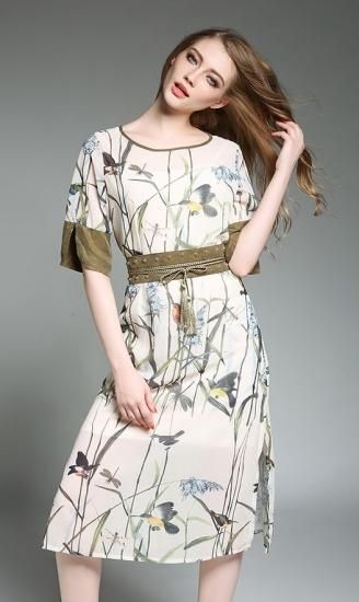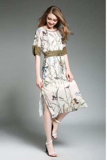 個性的なプリントを大人エレガントに♪ミディ丈リゾートワンピース
