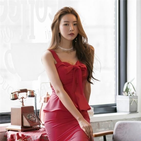 ぺプラム&リボンで女性らしさを格上げ♪膝丈タイトワンピース