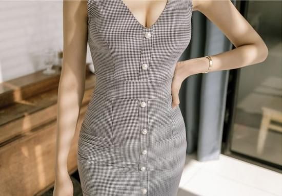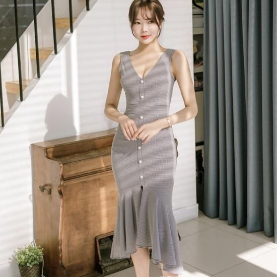 チェック柄を大人っぽく着こなせる♪ノースリーブマーメイドワンピース