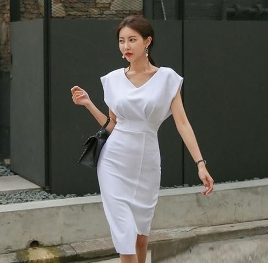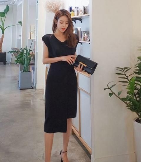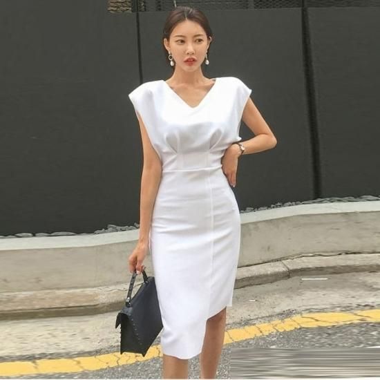 アシンメトリーな裾がポイント◇美シルエット タイトワンピース 3色