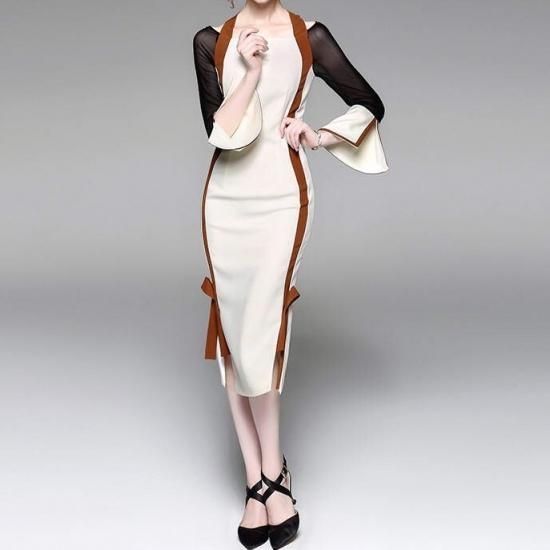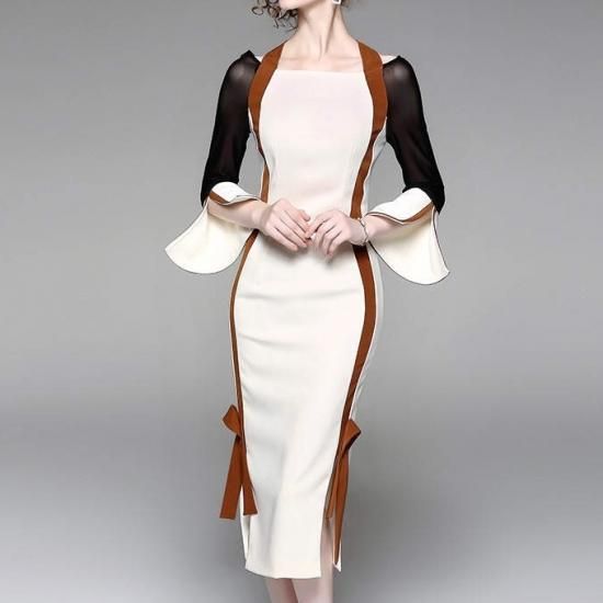 エレガントで個性的◇美シルエット 袖コン タイトワンピース