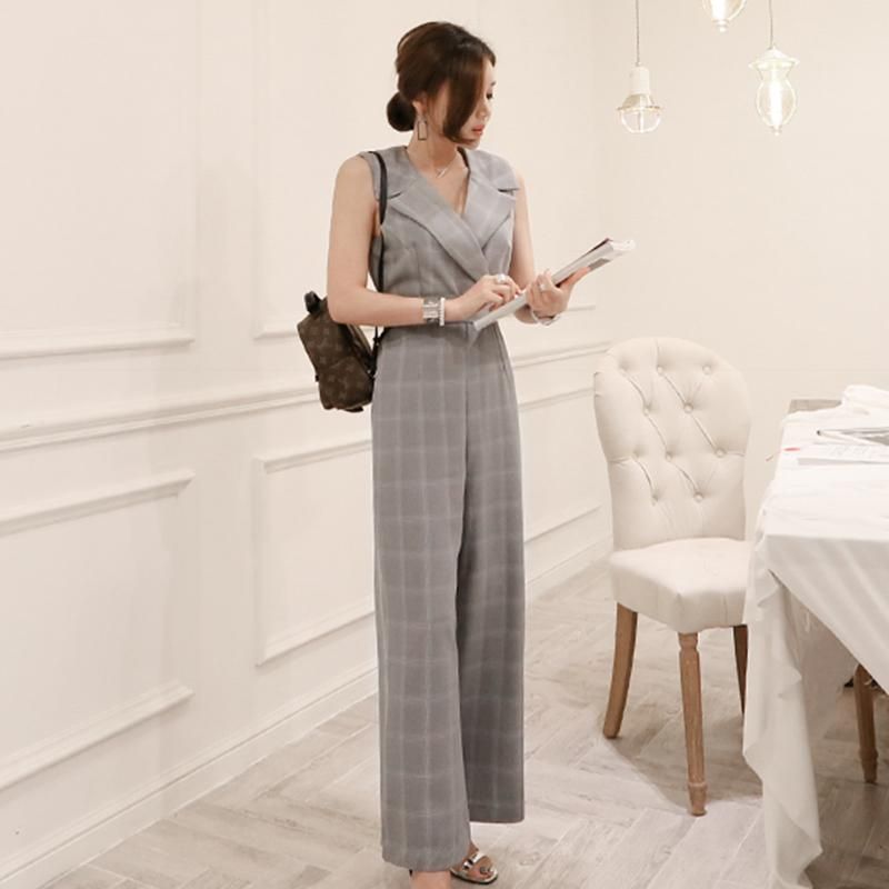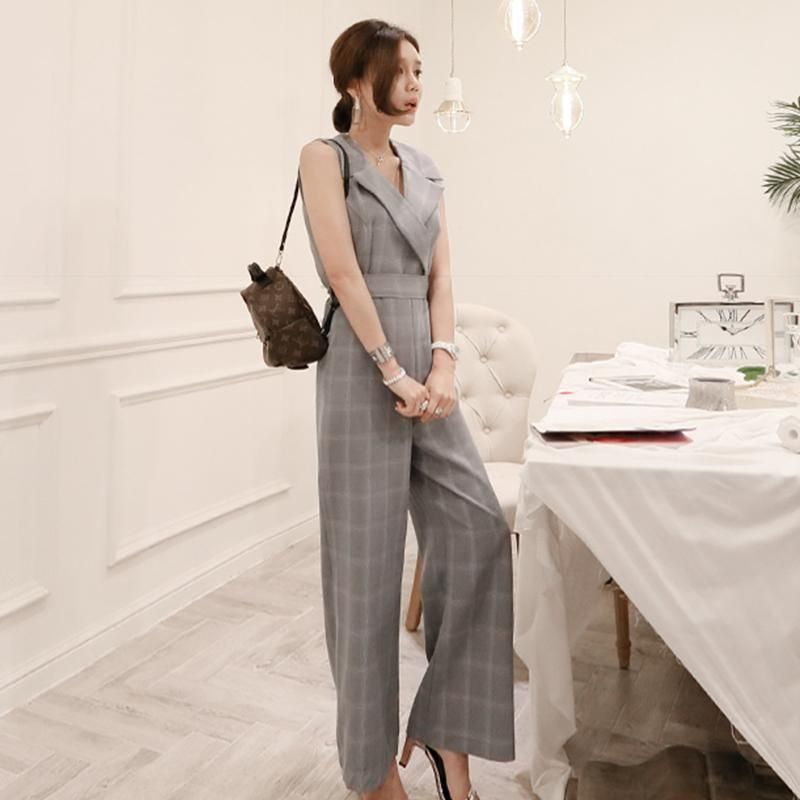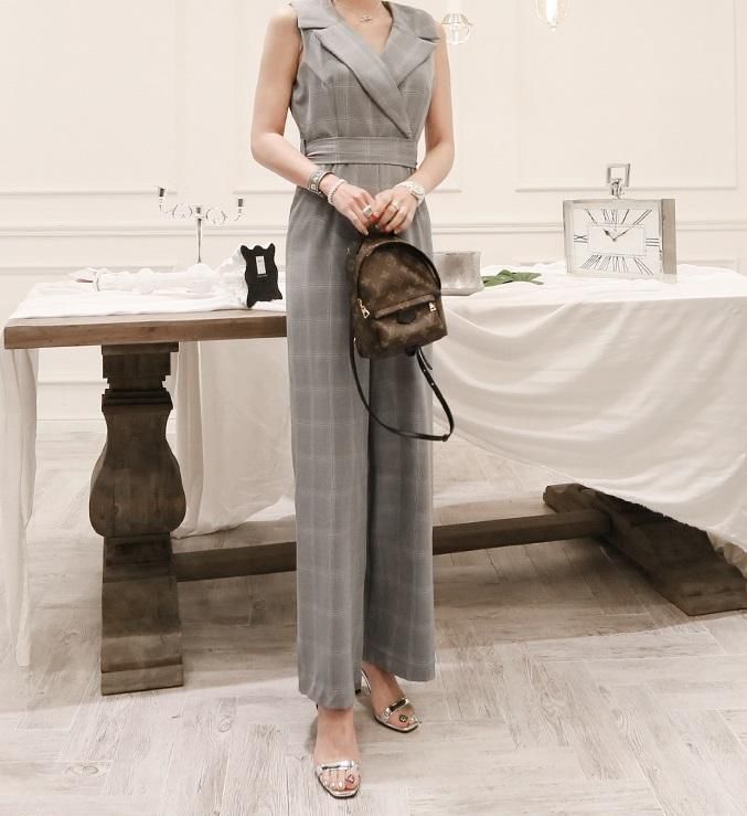 クール&フェミニン♪グレンチェック ウエストリボンオールインワン