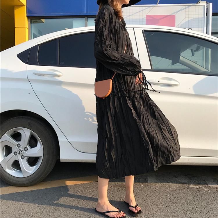 ナチュラルで大人かわいい◇ランダムプリーツ シャツワンピース 2色