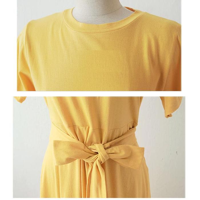 大人カジュアル♪ウエストリボン 半袖Tシャツワンピース 2色