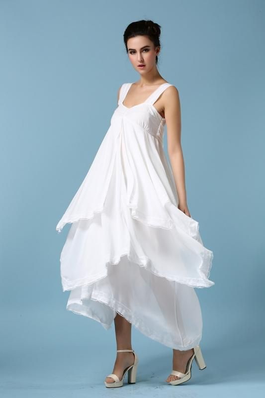 リゾートやビーチに映える美しいシルエット◇ホワイト ロングワンピース