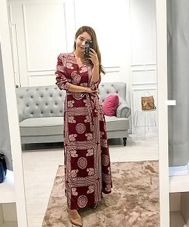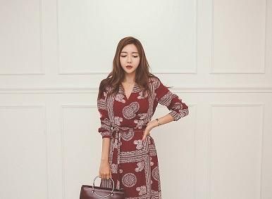 大人テイストなエスニックプリント◇カシュクール ロングワンピース 2色