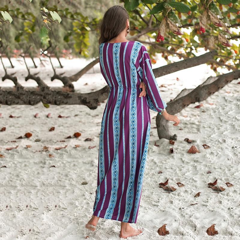 リゾートにぴったりなボヘミアンテイスト◇長袖 ロングワンピース