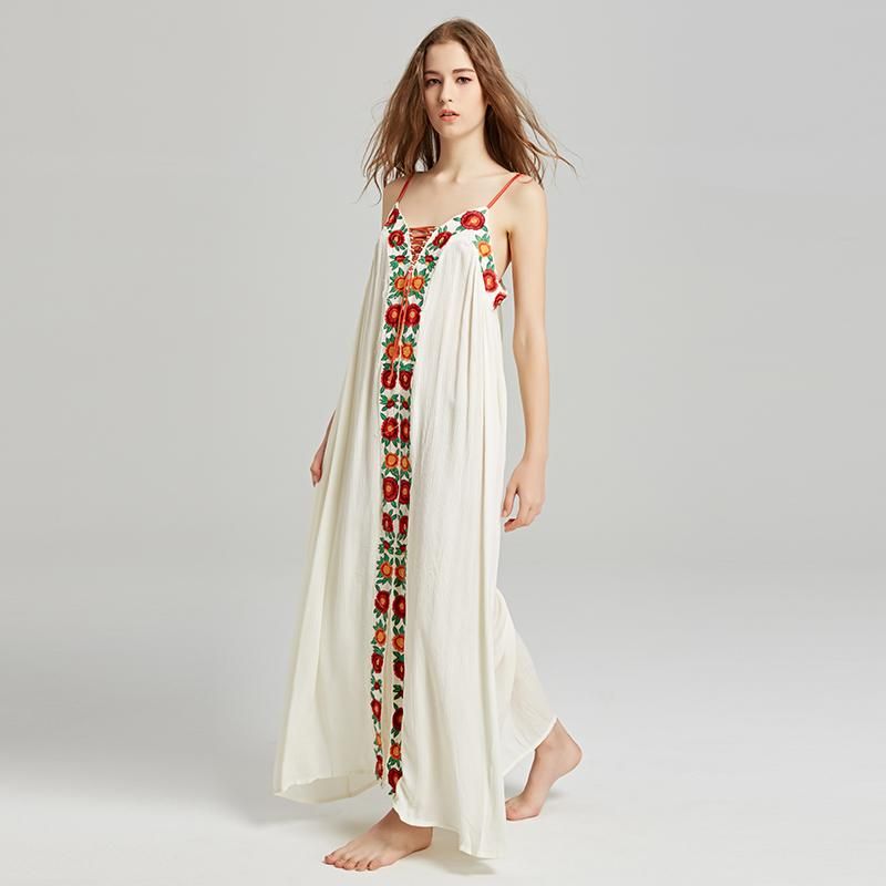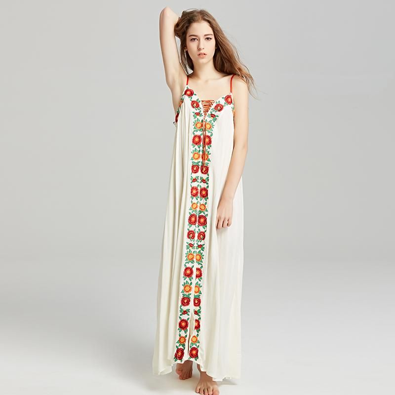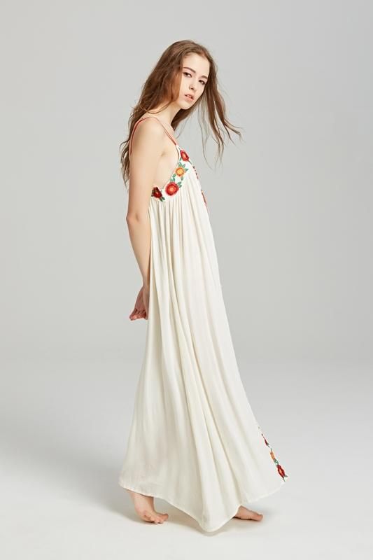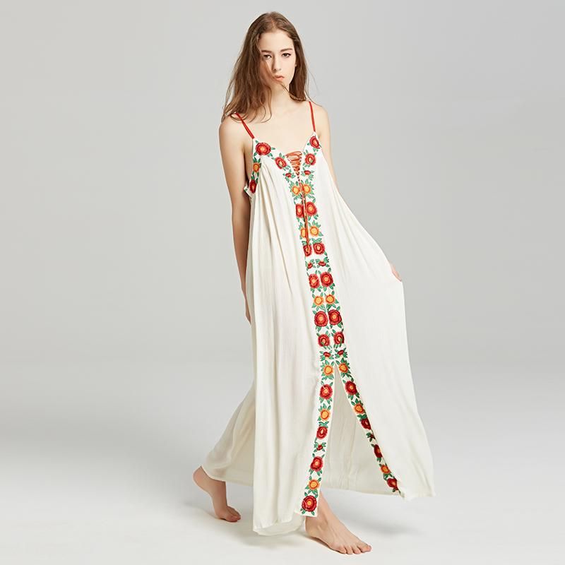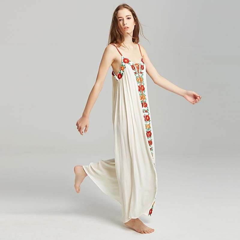 刺繍デザインがステキ◇ボヘミアンテイスト マキシキャミワンピース