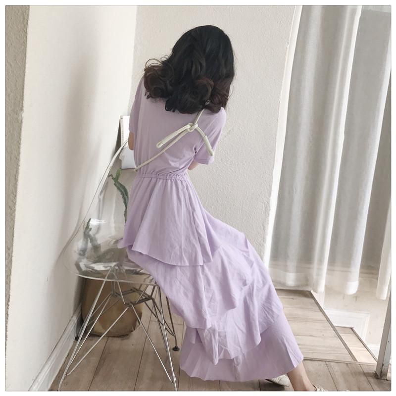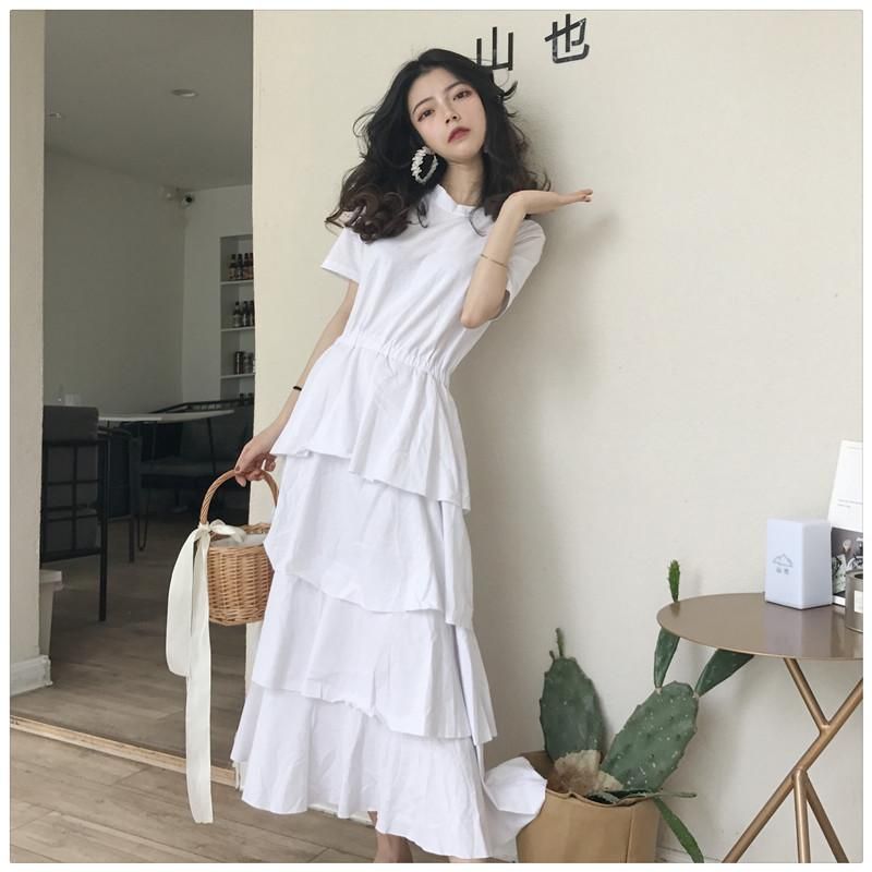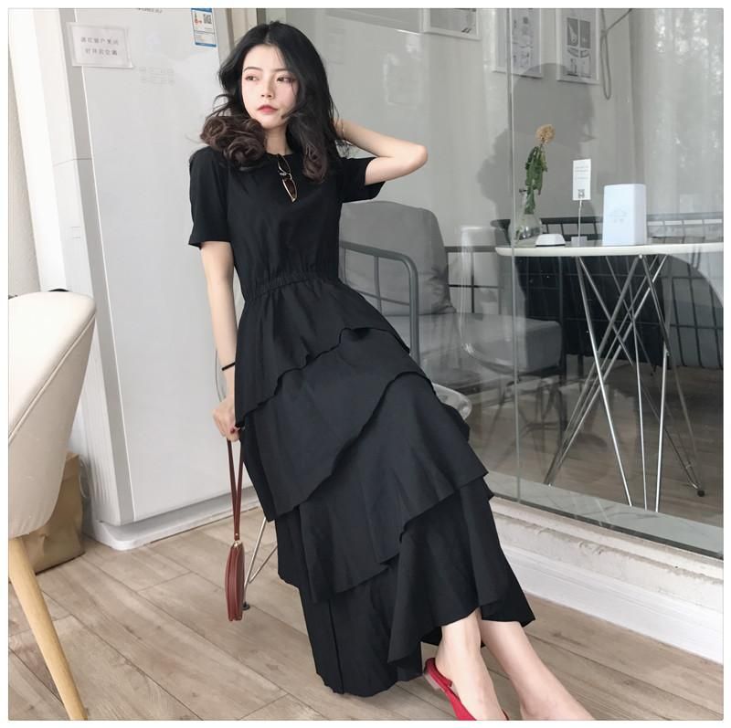 トレンドライクなティアードデザイン◇カット素材 半袖ロングワンピース 3色