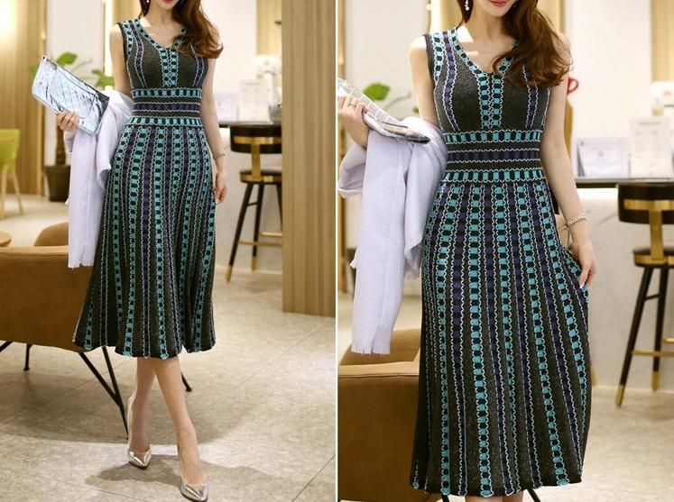 デイリーからおめかしまで大活躍♪サマーニット ロングフレアワンピース