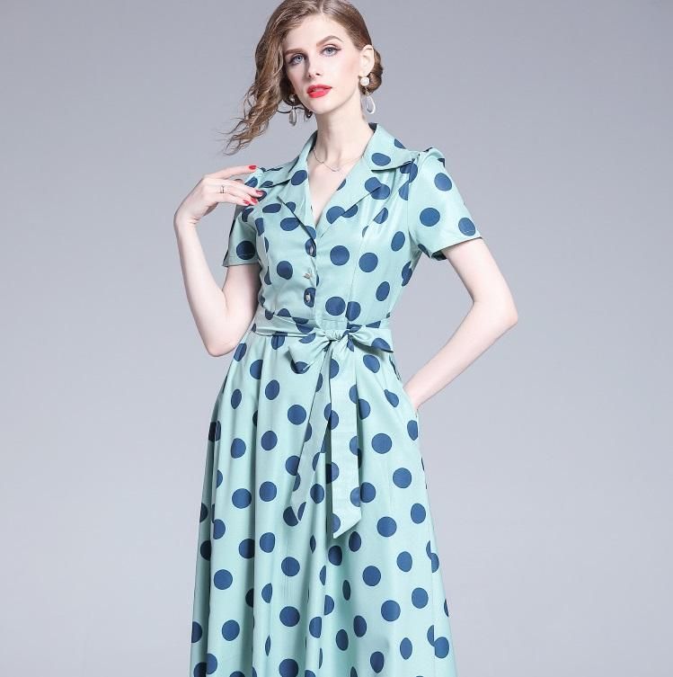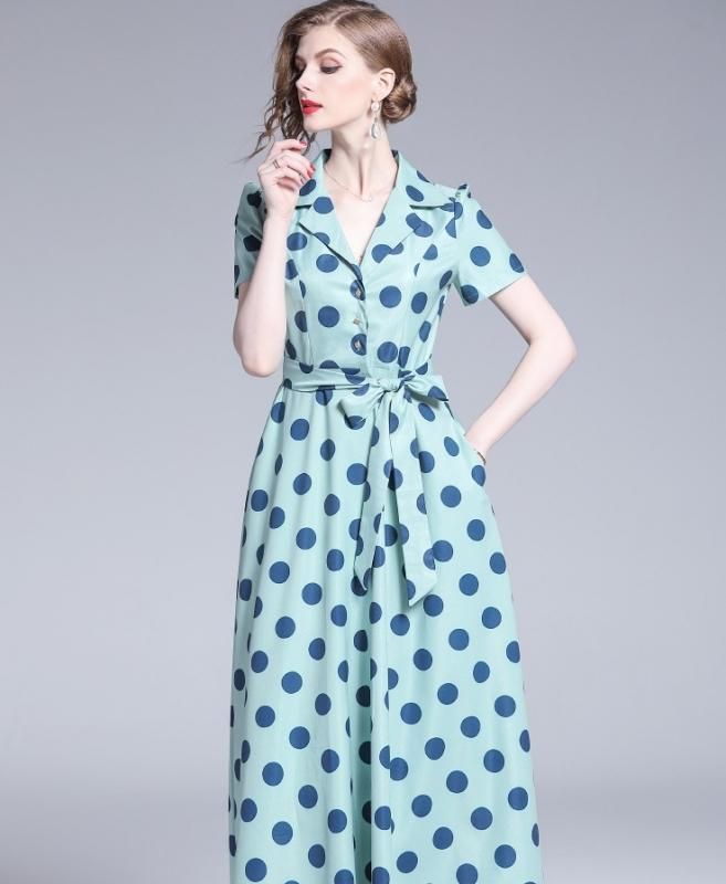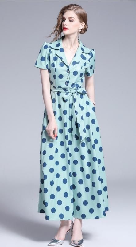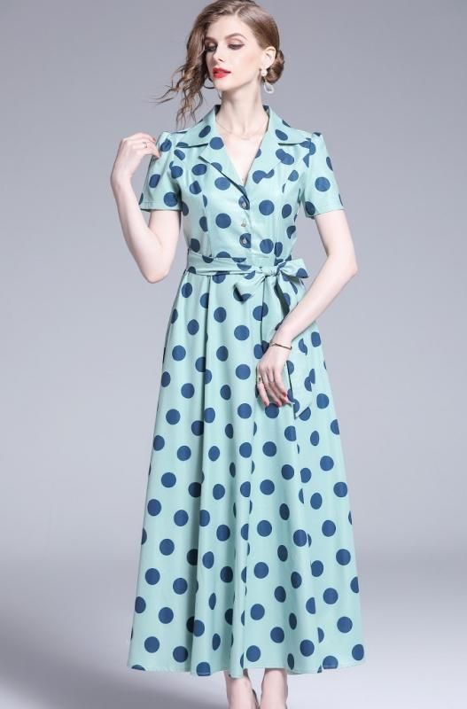 レトロなドット柄◇マキシ シャツワンピース大きいサイズあり