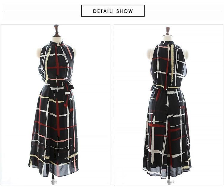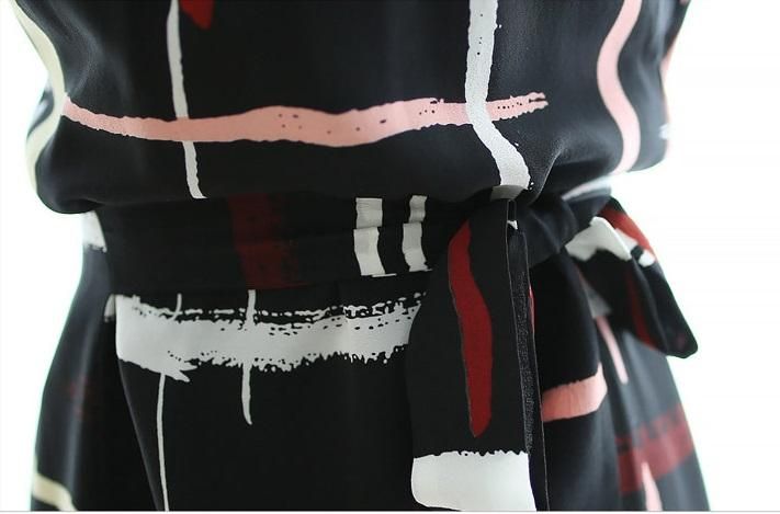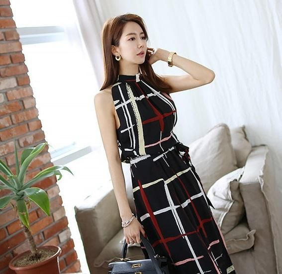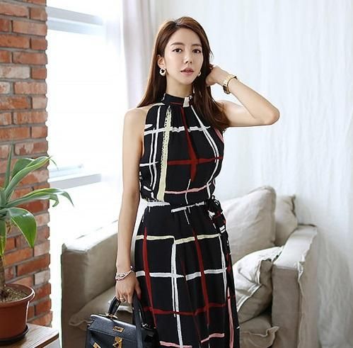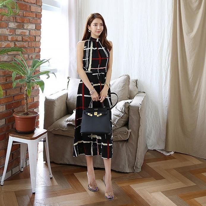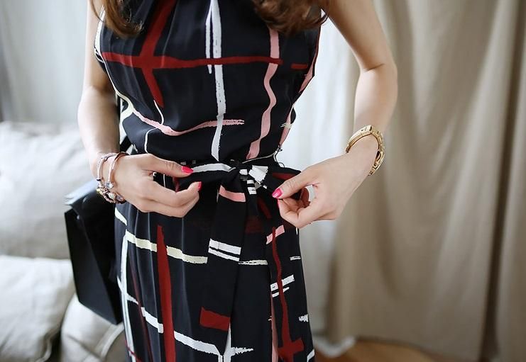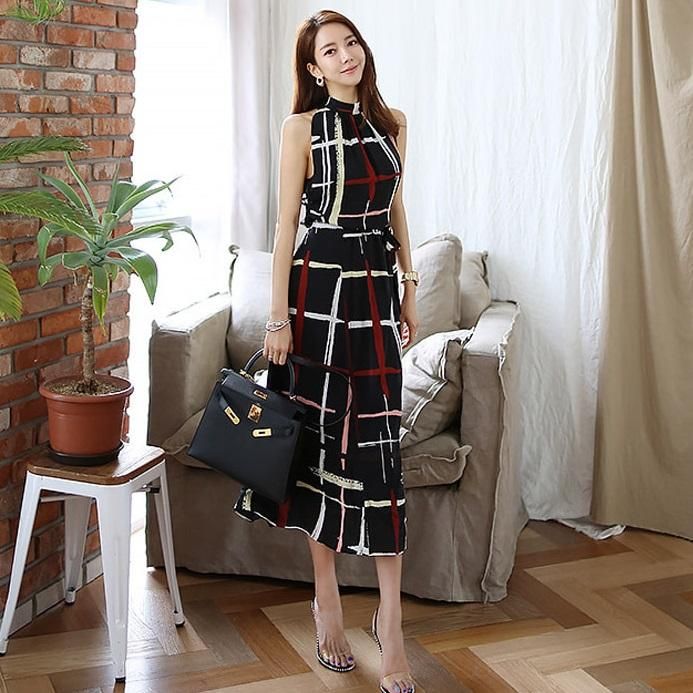 モードテイストなペイントチェックプリント◇シフォン ロングワンピース