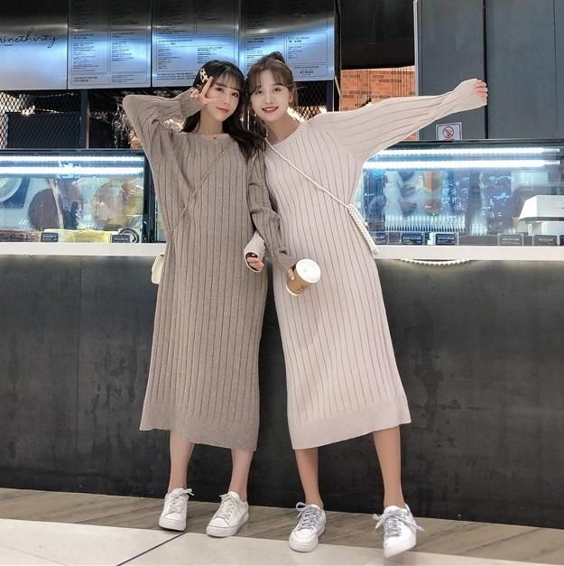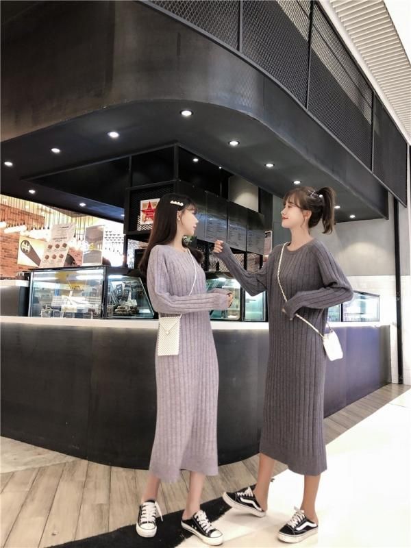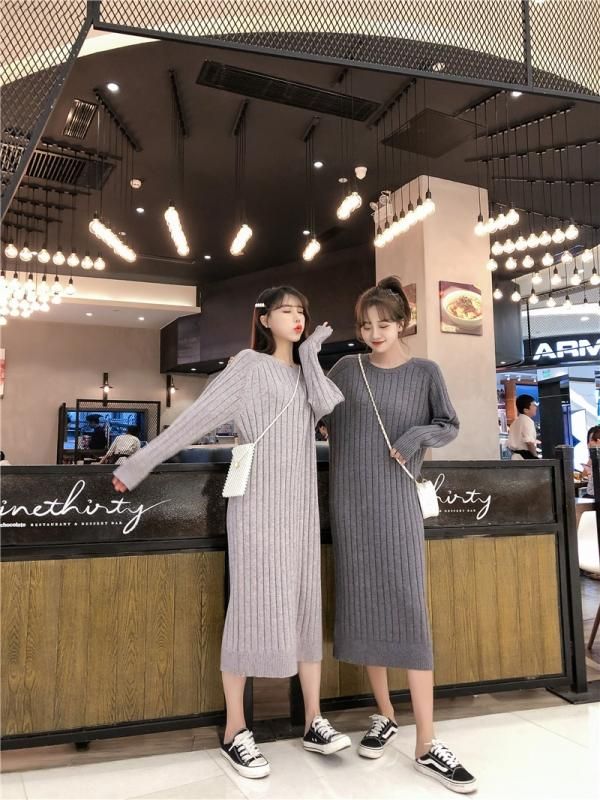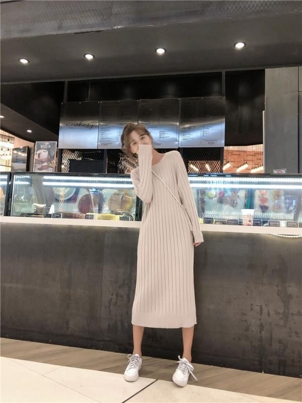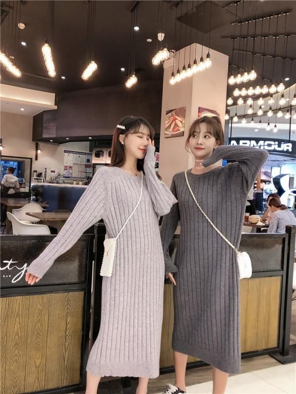 シンプルガーリー♪長袖リブニットワンピース 5色