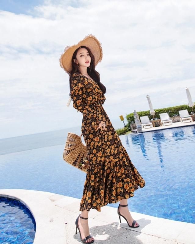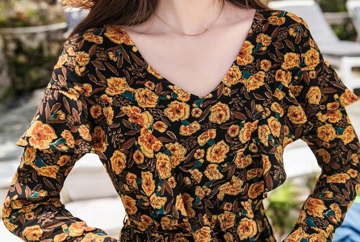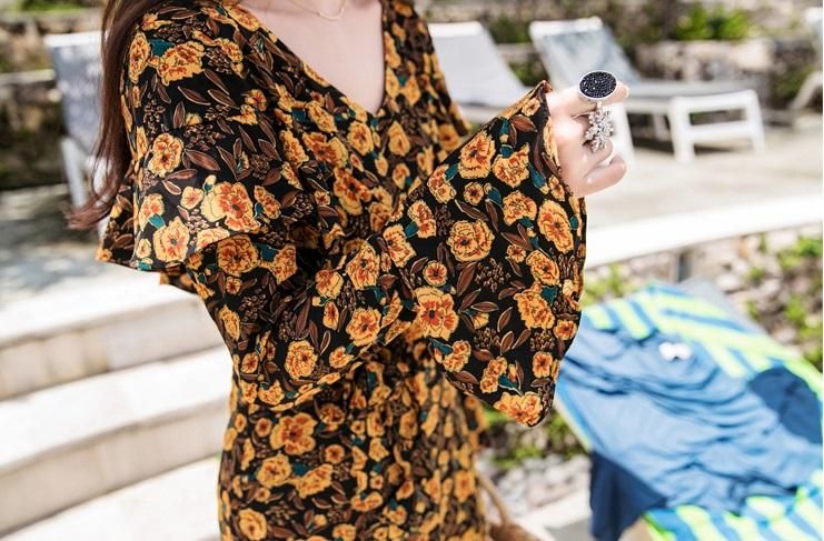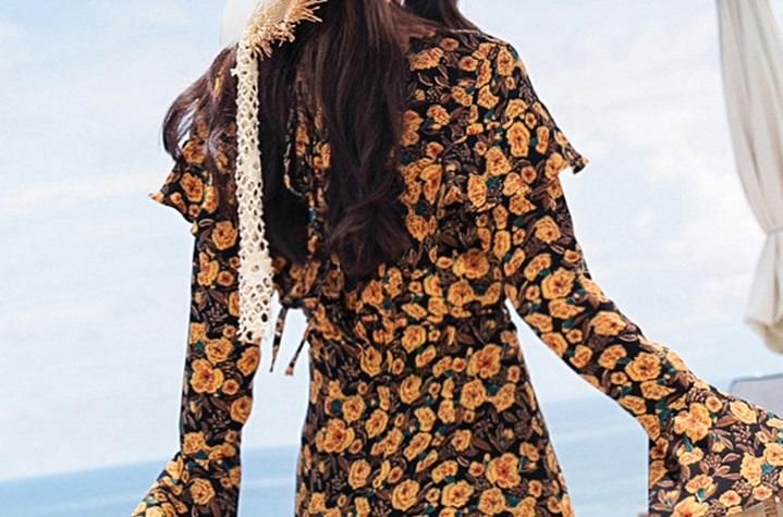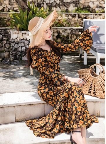 レトロエレガントなフラワープリント◇ロングフレアワンピース