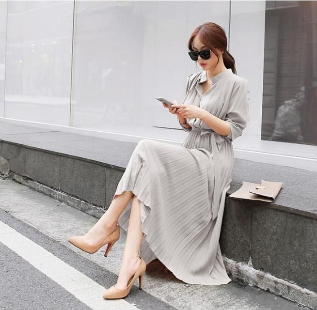 ほどよくゆったりとしたトップスとプリーツのロングスカートで美シルエット♪