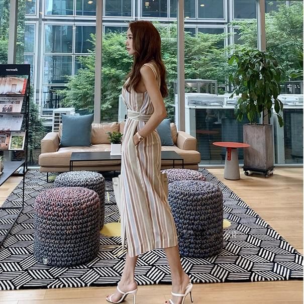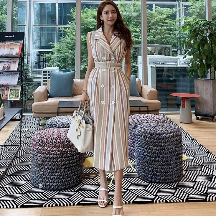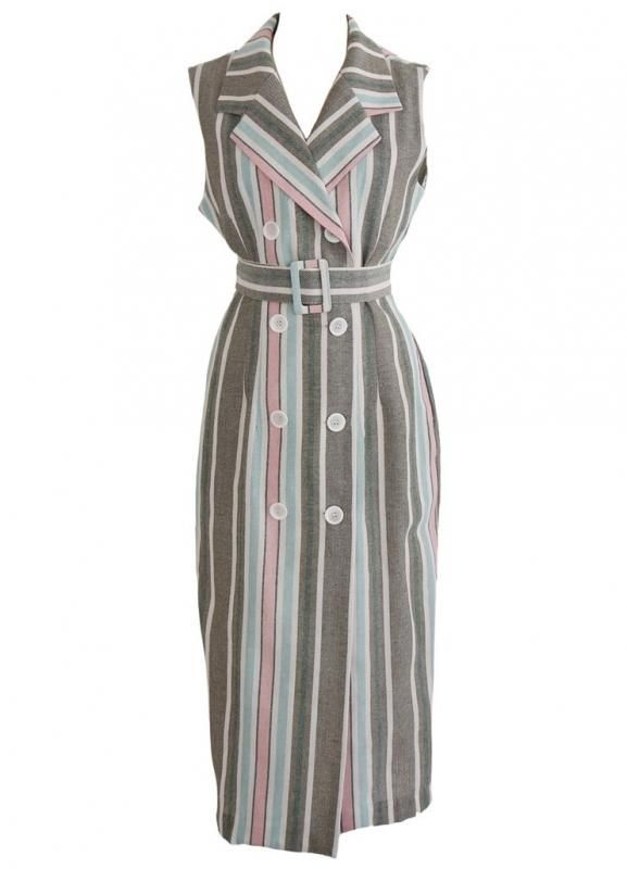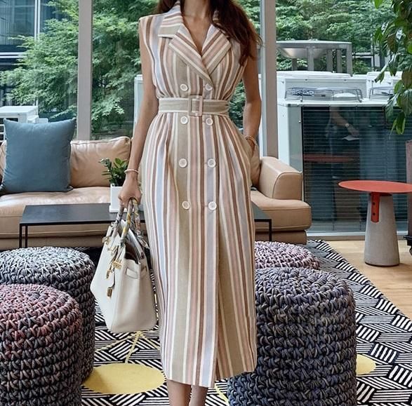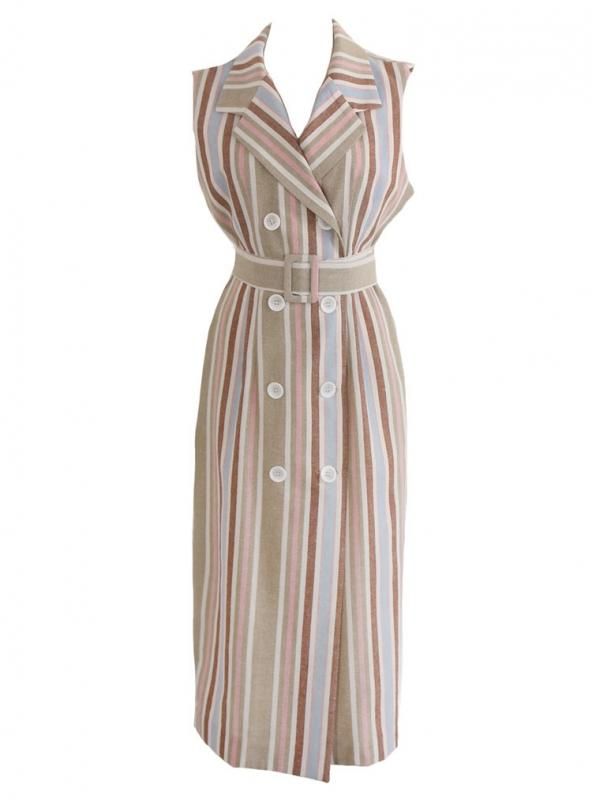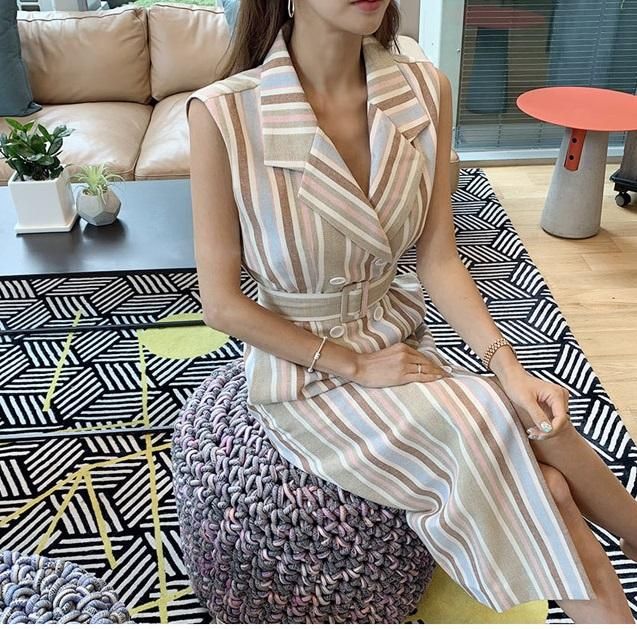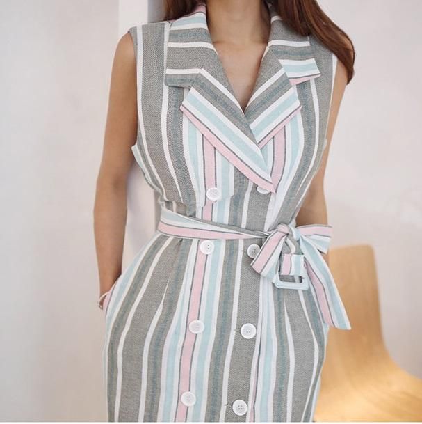 爽やかなマルチストストライプ◇きれいめカジュアル ノースリーブシャツワンピース 2色