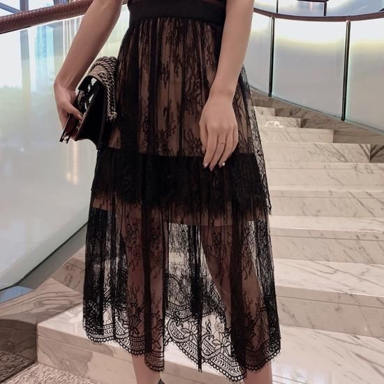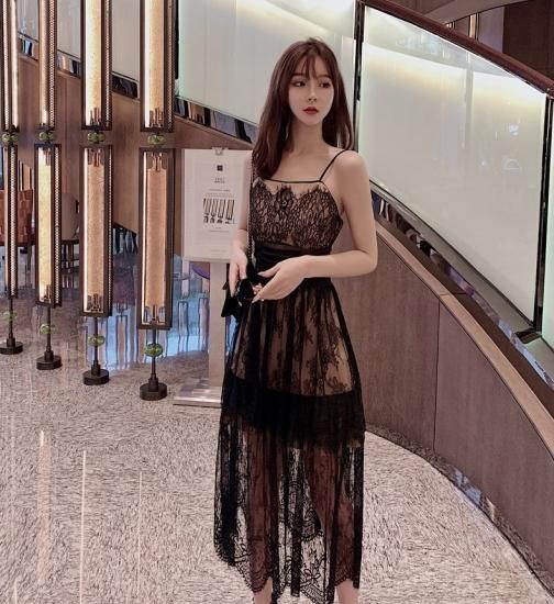 シースルーレースがセクシー♪ブラックレース キャミワンピース