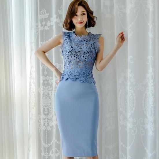 【即納】爽やかなブルーカラーとタイトなラインが上品セクシーなレーストップセットアップ