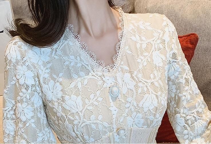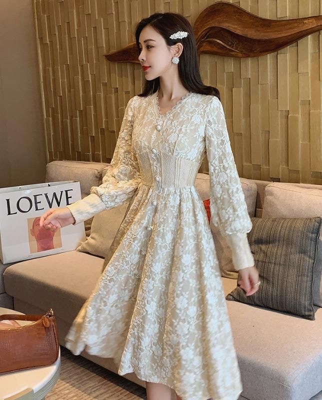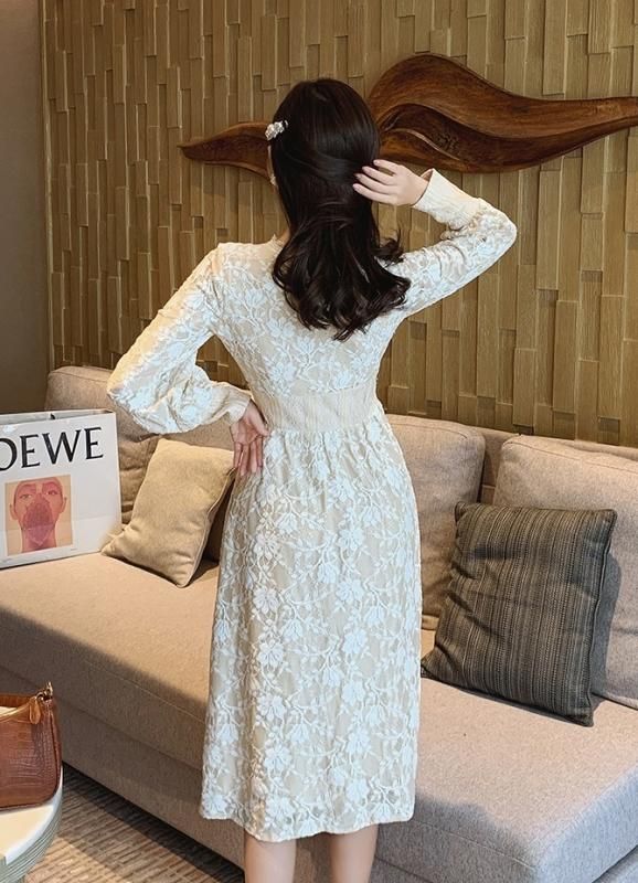 大人ガーリーなレースワンピ♪長袖 膝丈フレアワンピース