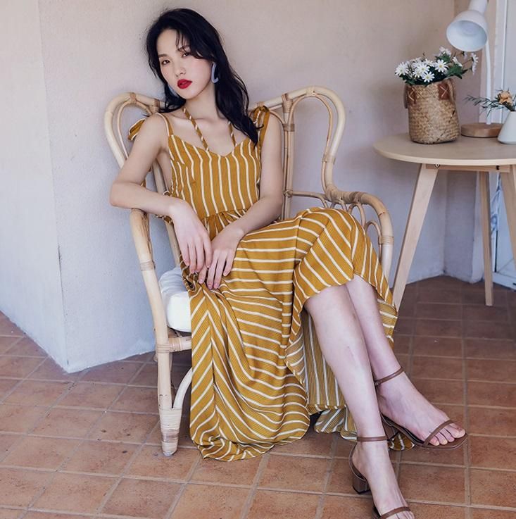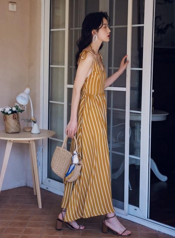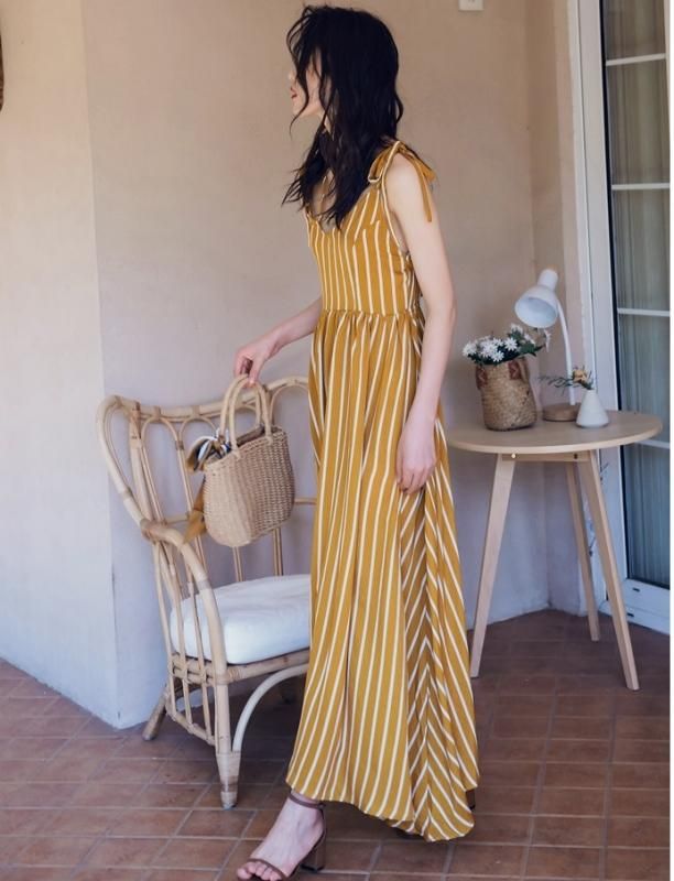 リゾートスタイルにぴったり◇ストライプ マキシキャミワンピース